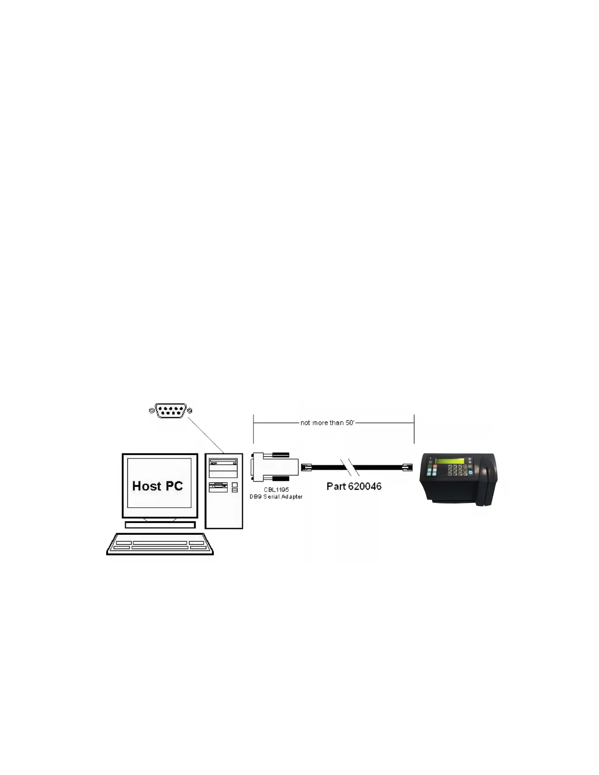The SY-765 terminal can be connected to the host computer via RS-232 with the DB9 Serial Adapter and a