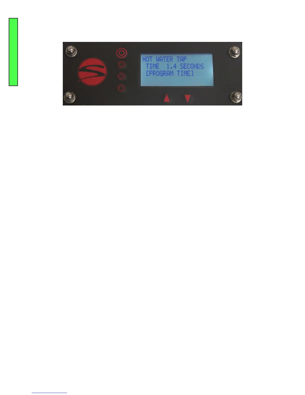 To change the ‘Hot Water Tap’ time by tenths of a second, press the button associated with line 2.