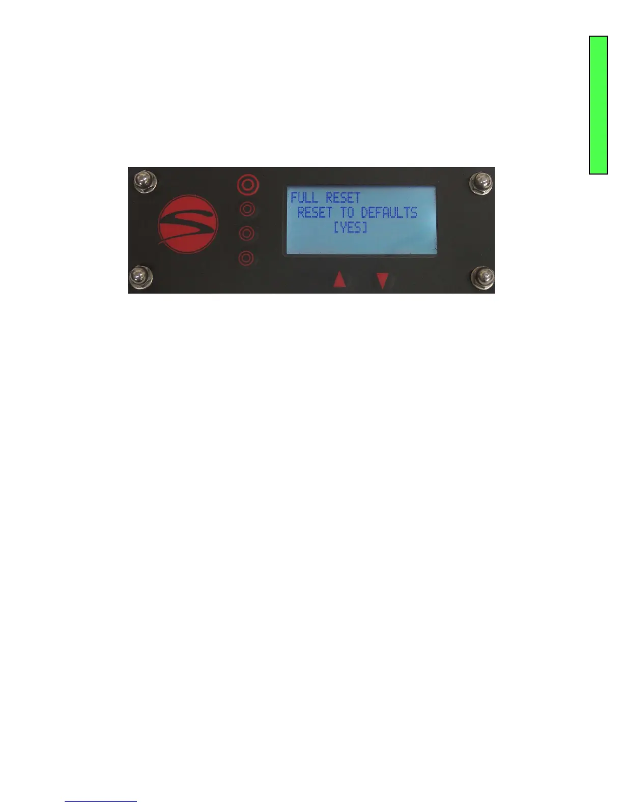 The Full Reset to Defaults option can be achieved by pressing the line 3 button.