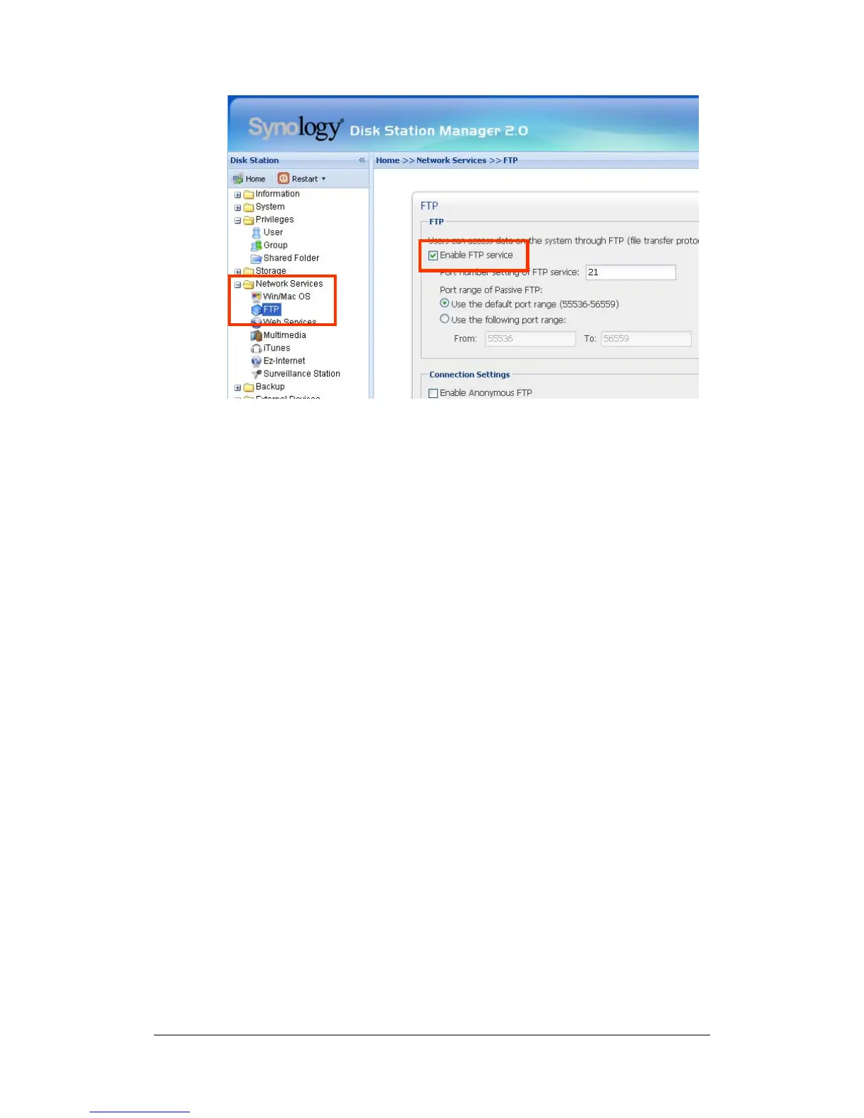 2. FTP Service does not support Unicode. Before enabling FTP Service,