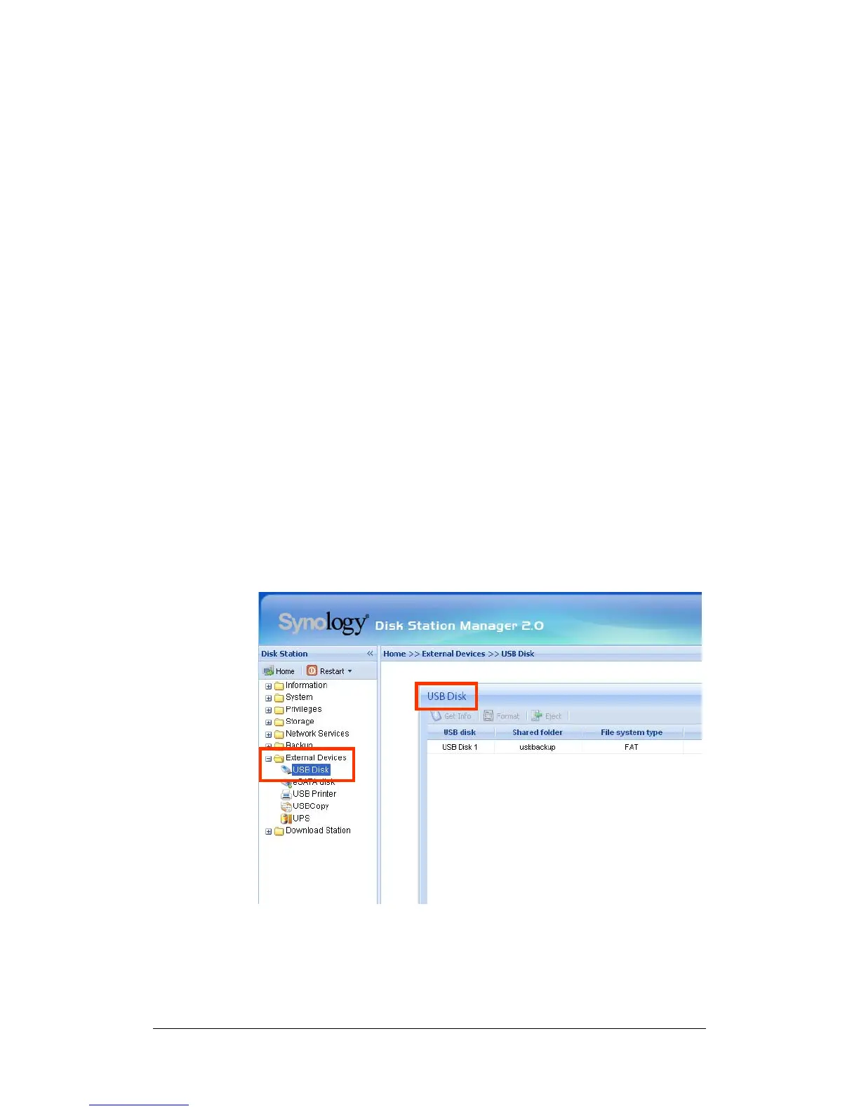 2. Go to the page “External Devices > USB Disk” or “External Devices >