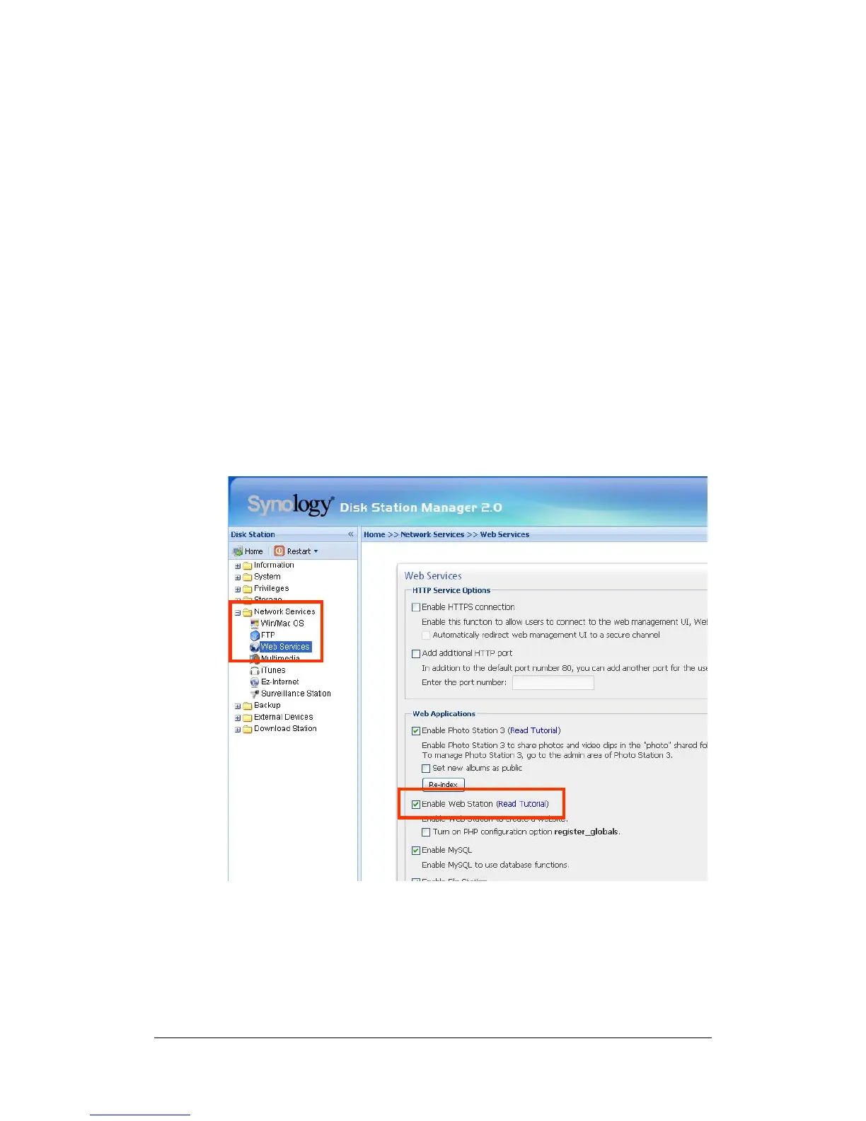 Please click on “Read Tutorial” link next to “Enable Web Station”.