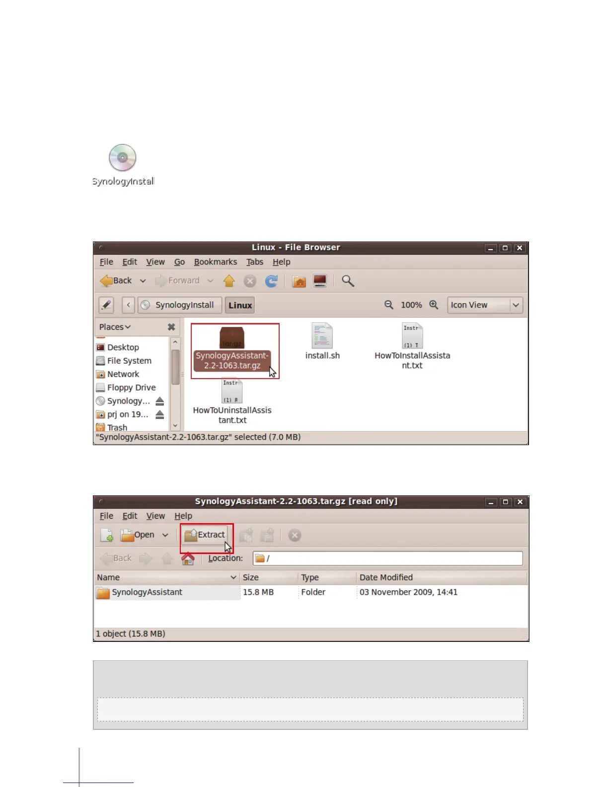 Click 4 Extract, and then extract the SynologyAssistant directory to the path “/usr/