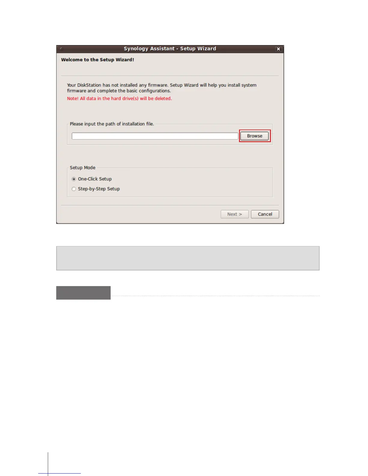 Note: If you choose One-Click Setup, the default admin password for your Disk Station