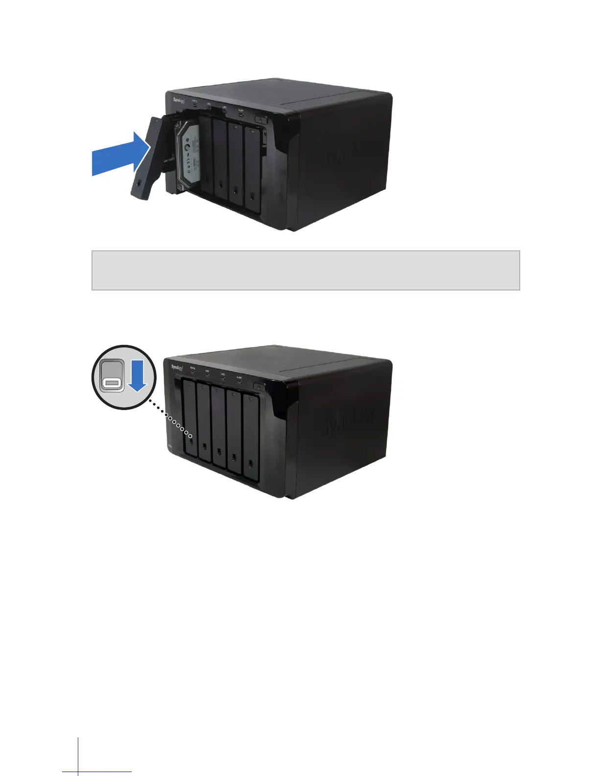 Press the handle in ush with the front panel to hold the hard drive tray in place.6