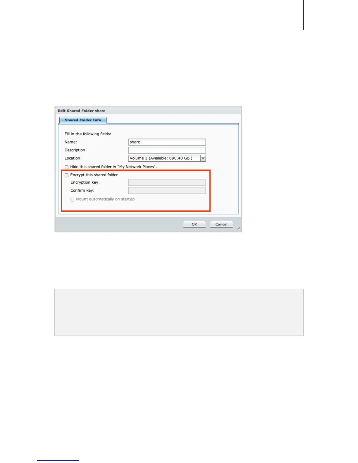 2 Tick Encrypt this shared folder, enter the encryption key in the Encryption key field, and enter the same key