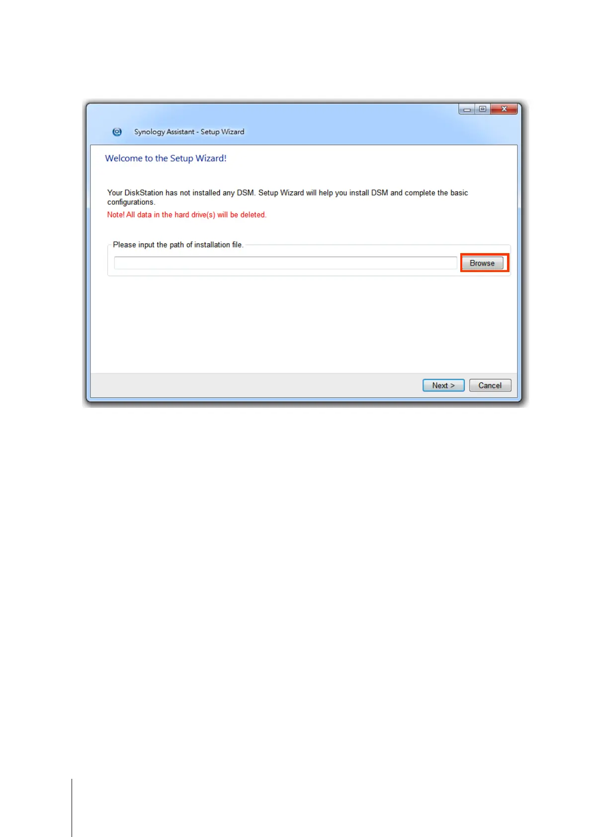 3 Click Browse to locate the DSM_[model name]_[number].pat installation file in the DSM folder of your