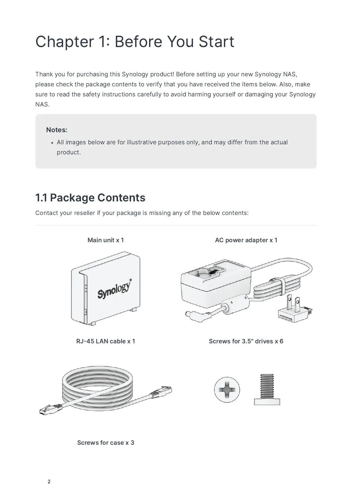 Synology DiskStation DS124 - Before You Start; Package Contents