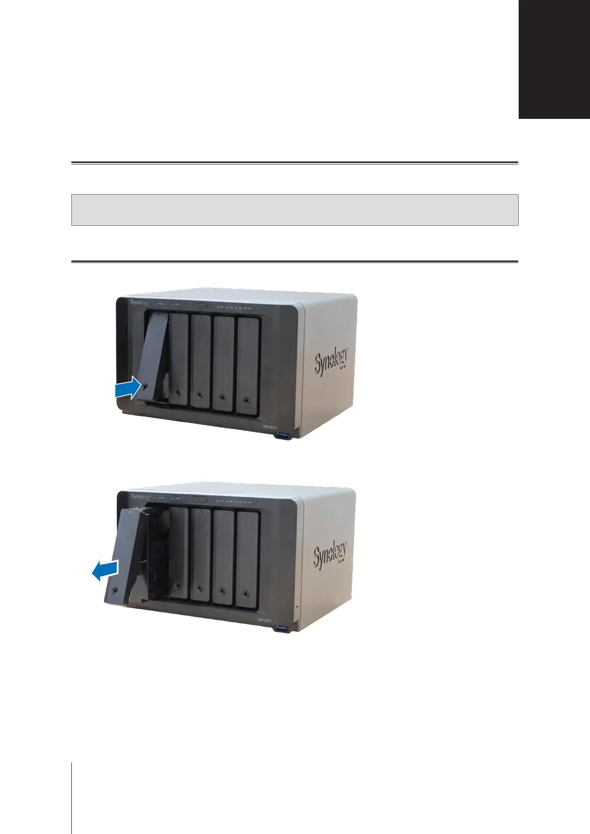 Pull the hard drive tray handle in the direction as indicated below to remove the hard drive tray.