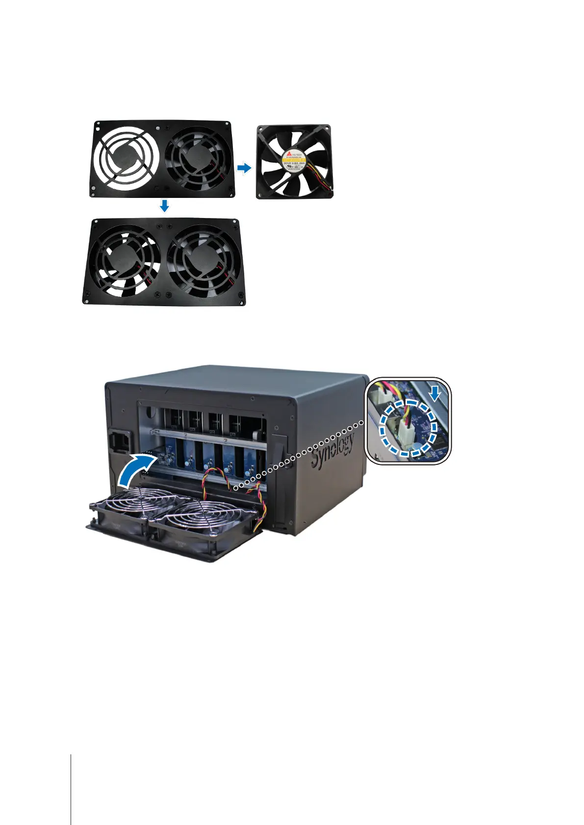 Connect the 2 fan cables to the connectors located near the bottom of the fan socket, and then replace the