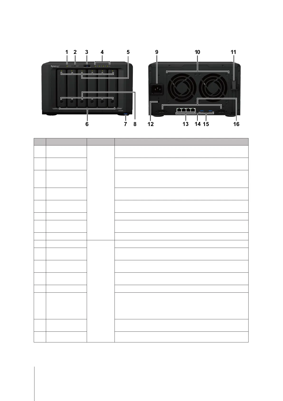 Rear USB 3.0 Port Connect external hard drives or other USB devices to the DiskStation here.