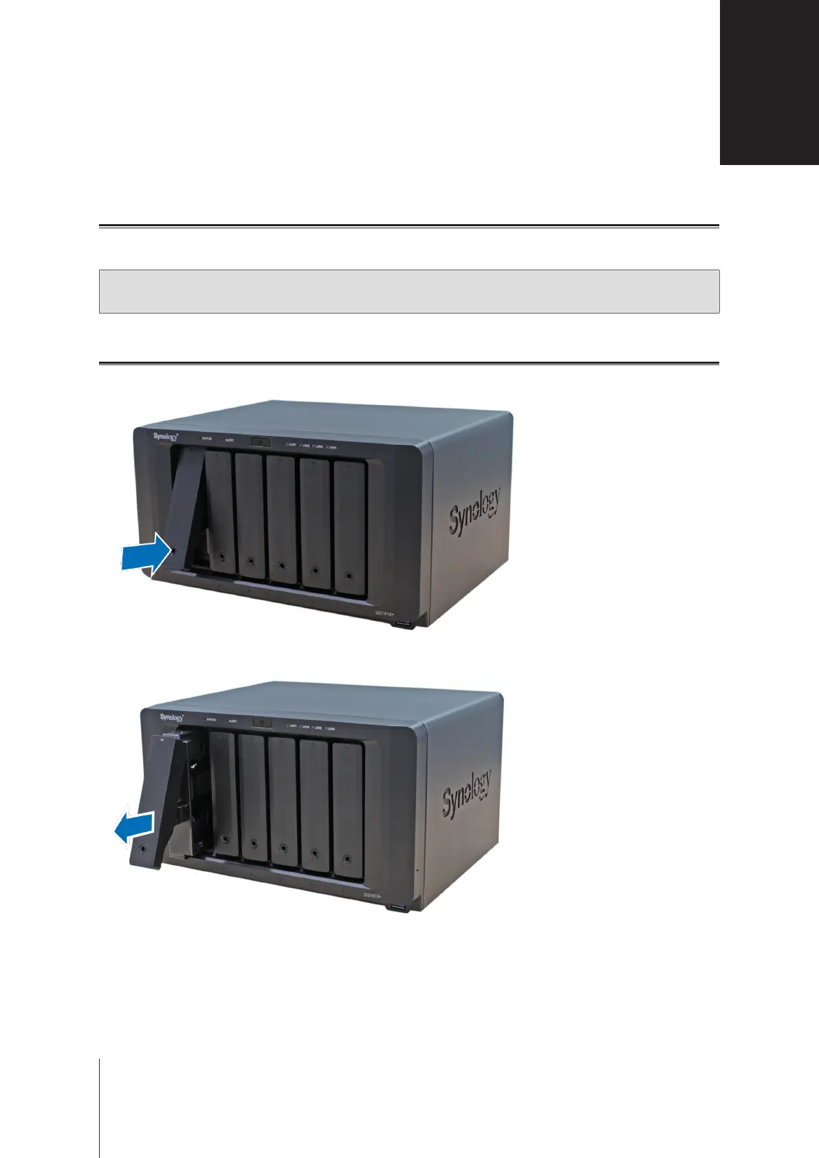 Pull the hard drive tray handle in the direction as indicated below to remove the hard drive tray.