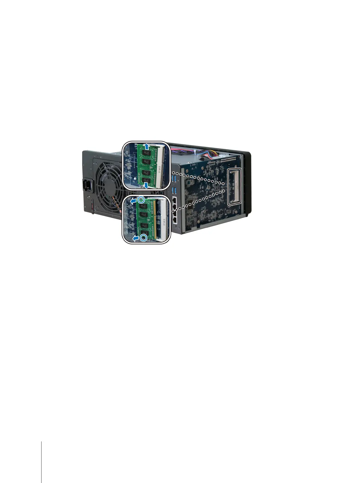Follow step 1 and 2 of the "To install the RAM module" section to shut down your DiskStation, disconnect the