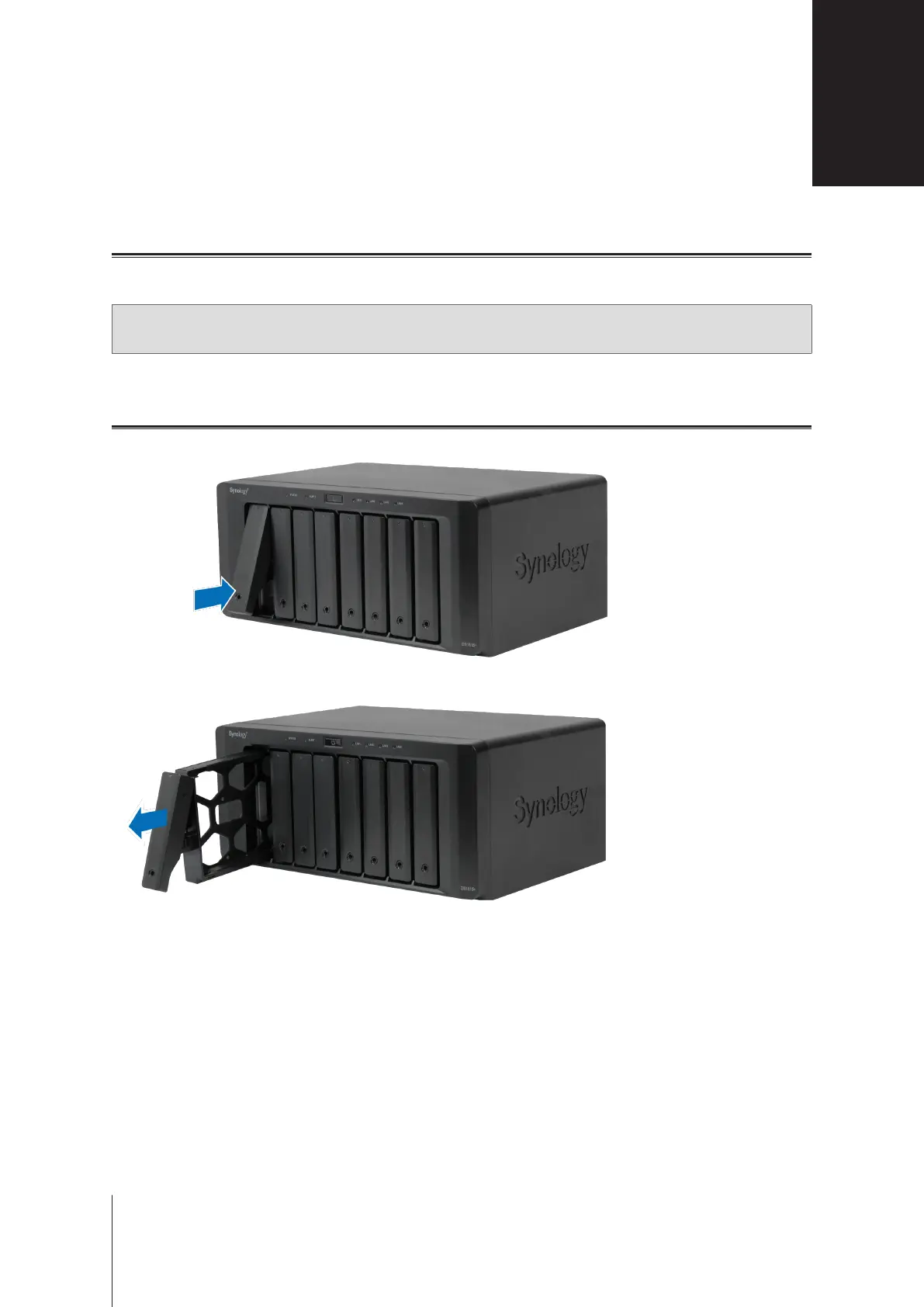 Pull the hard drive tray handle in the direction as indicated below to remove the hard drive tray.