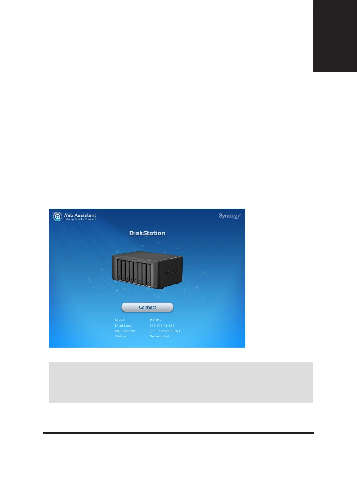 Web Assistant will be launched in your web browser. It will search for and nd the DiskStation within the local