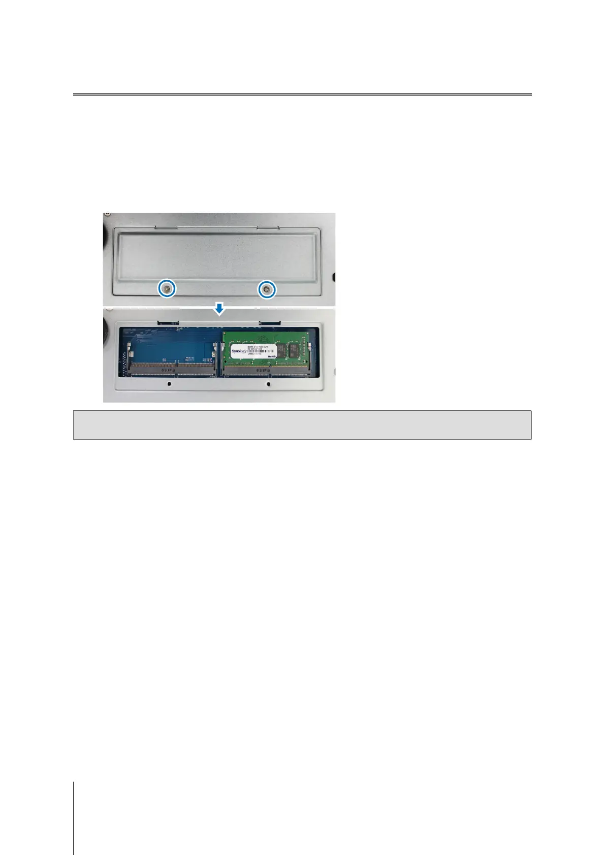 The optional Synology DDR4 RAM module is designed for DiskStation memory expansion. Follow the steps
