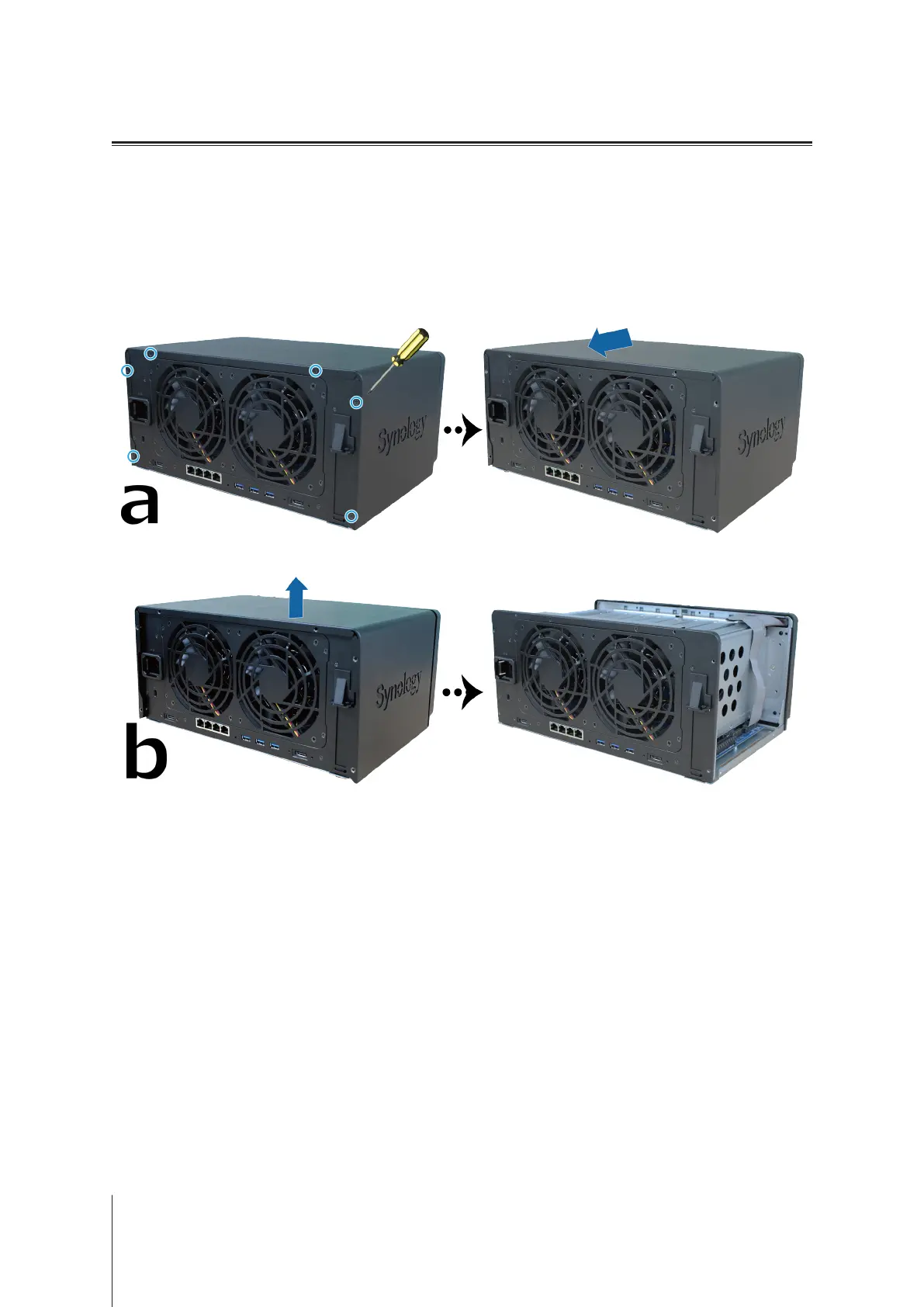 Press and hold the power button until you hear a beep sound to shut down your DiskStation. Disconnect all