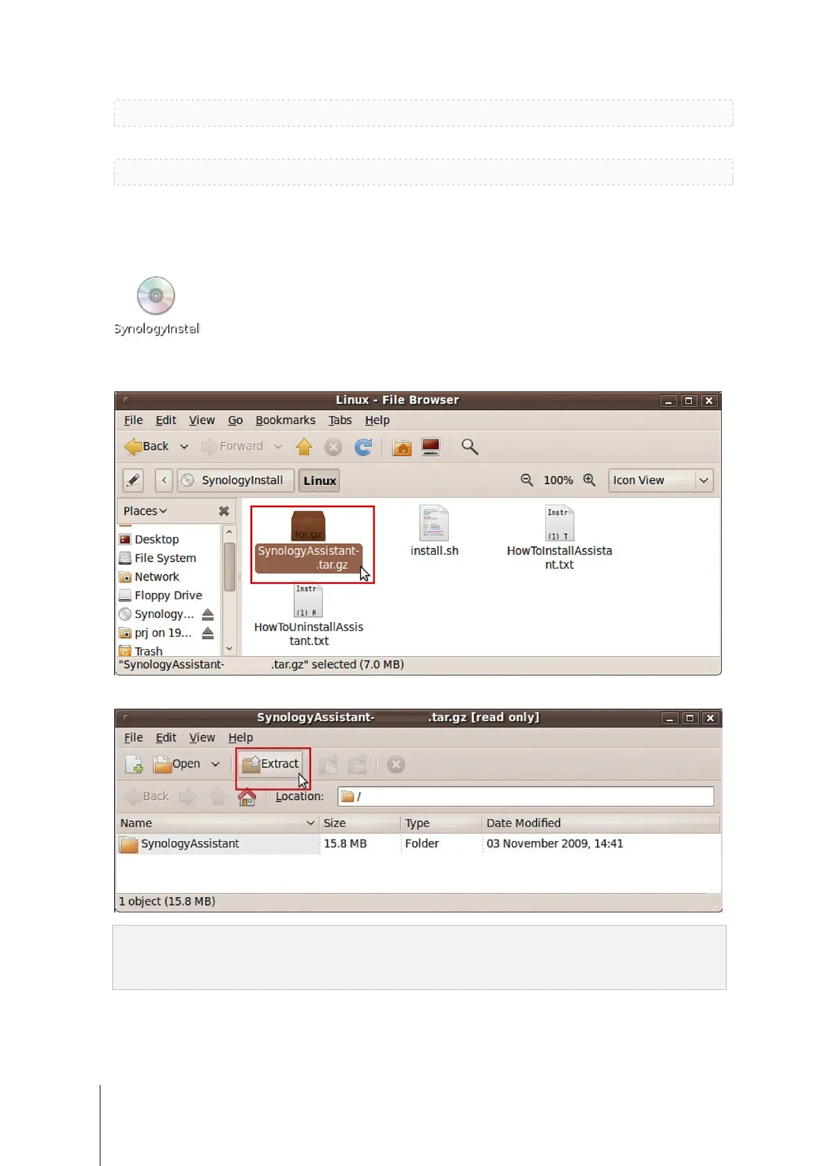 3 In the File Browser window that appears, double-click the Linux folder, and then double-click Synology