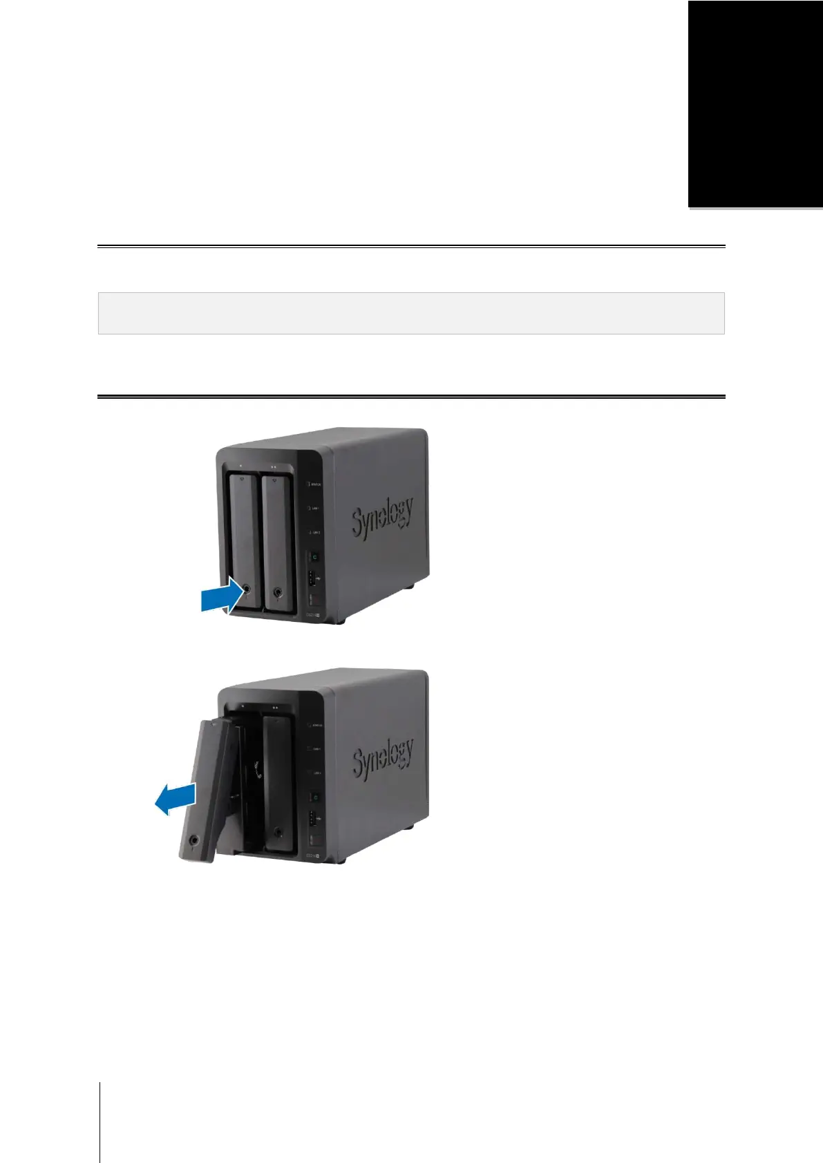 At least one 3.5” or 2.5” SATA drive (please visit www.synology.com for compatible drive models)