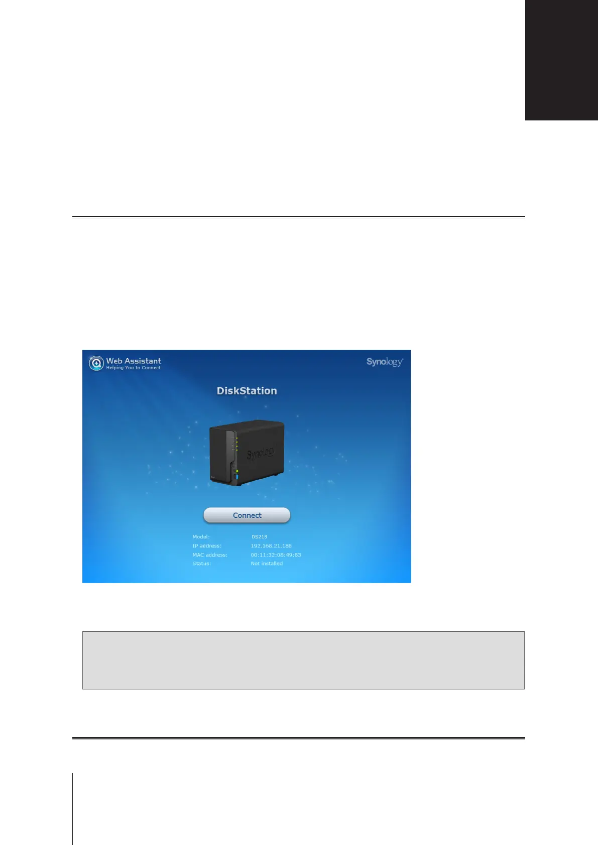 Web Assistant will be launched in your web browser. It will search for and nd the DiskStation within the local