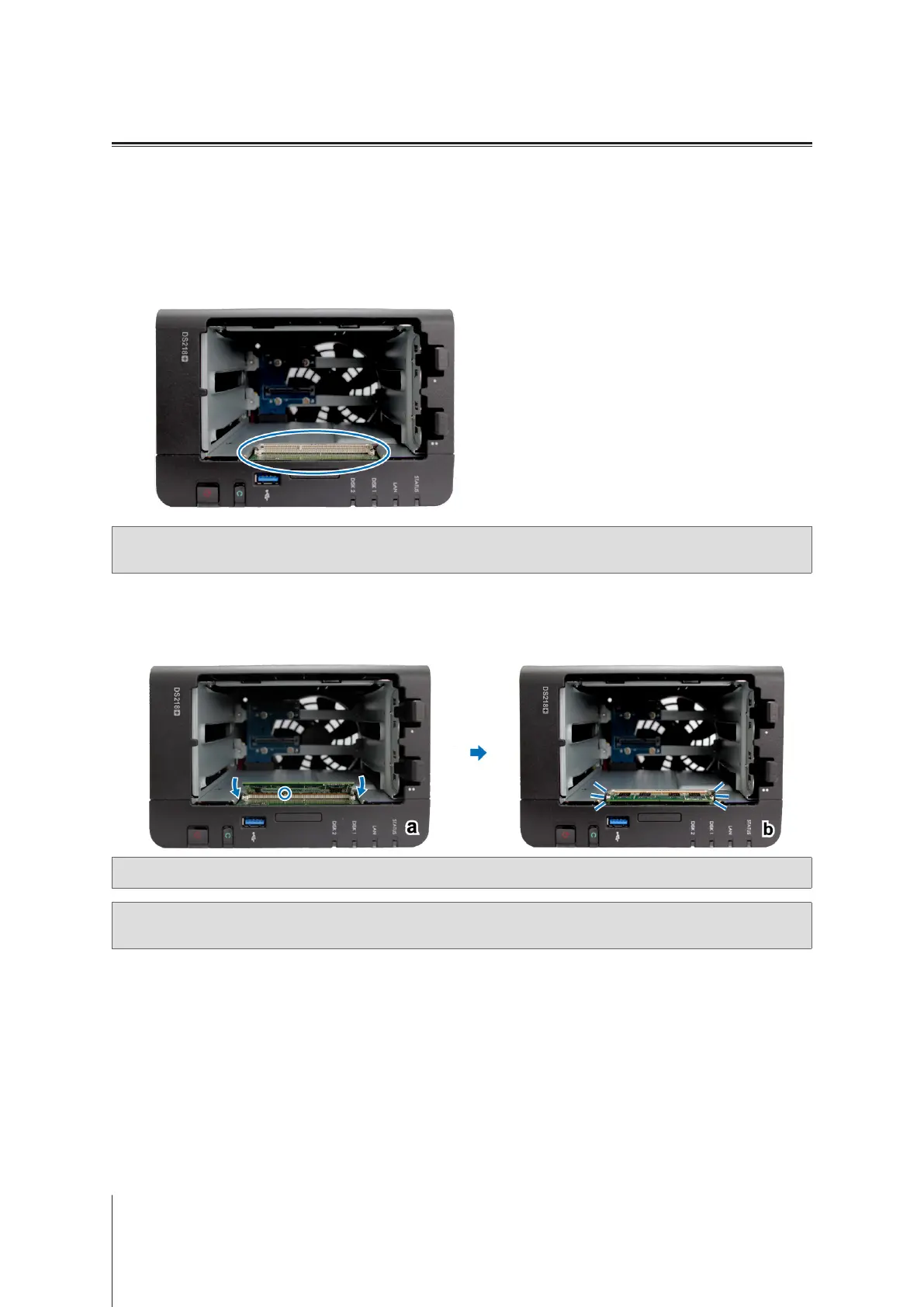 If your DiskStation does not recognize the memory or does not start up successfully, please make sure that the