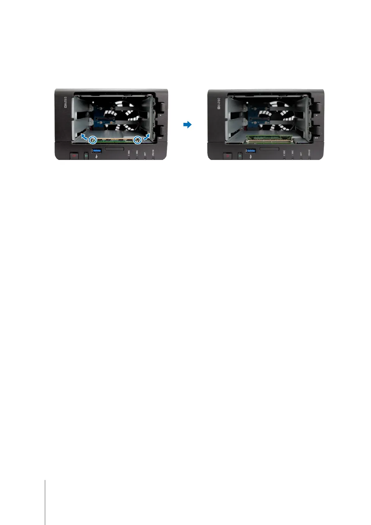 Follow step 1 and 2 of the "To install a memory module" section to shut down your DiskStation, disconnect the