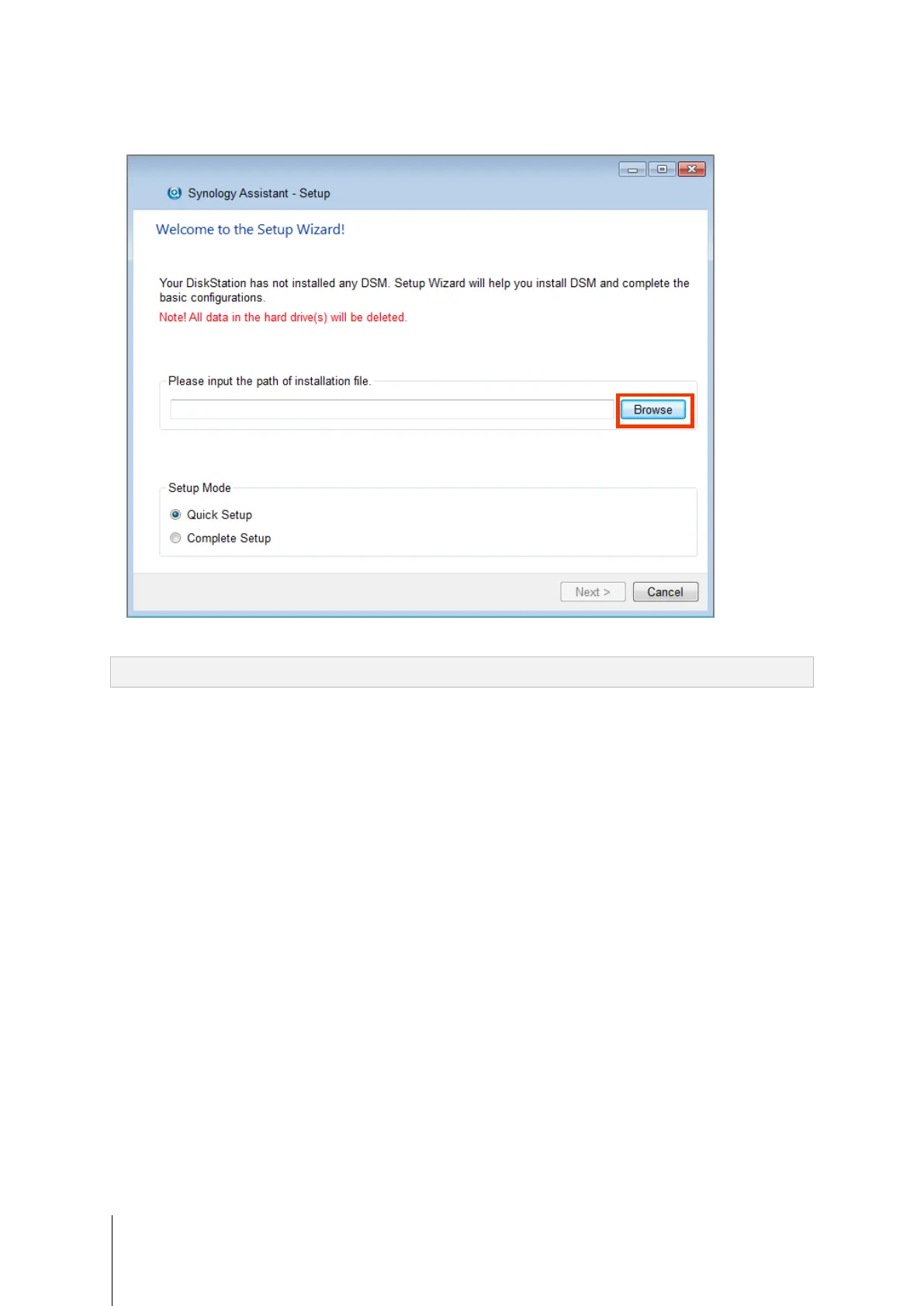 3 Click Browse to locate the DSM_[model name]_[number].pat installation file in the DSM folder of your