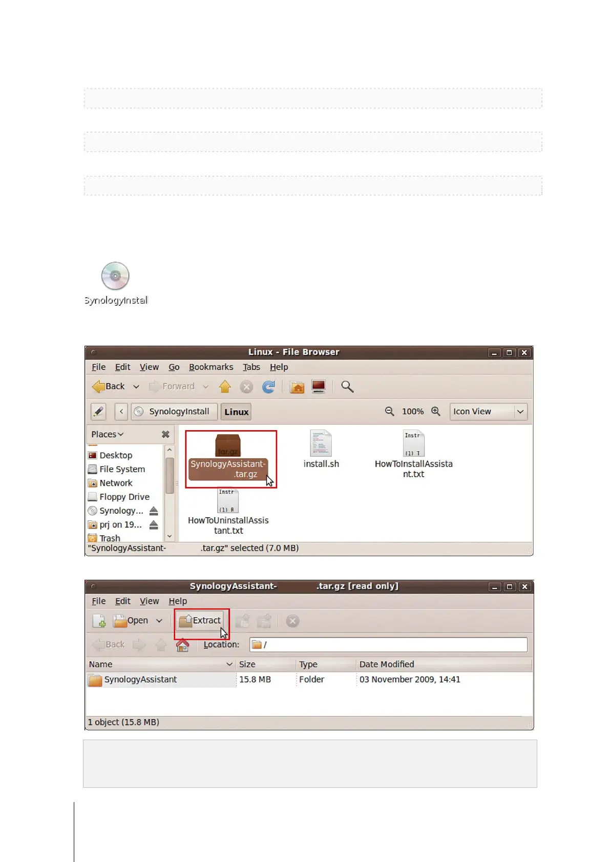 3 In the File Browser window that appears, double-click the Linux folder, and then double-click Synology