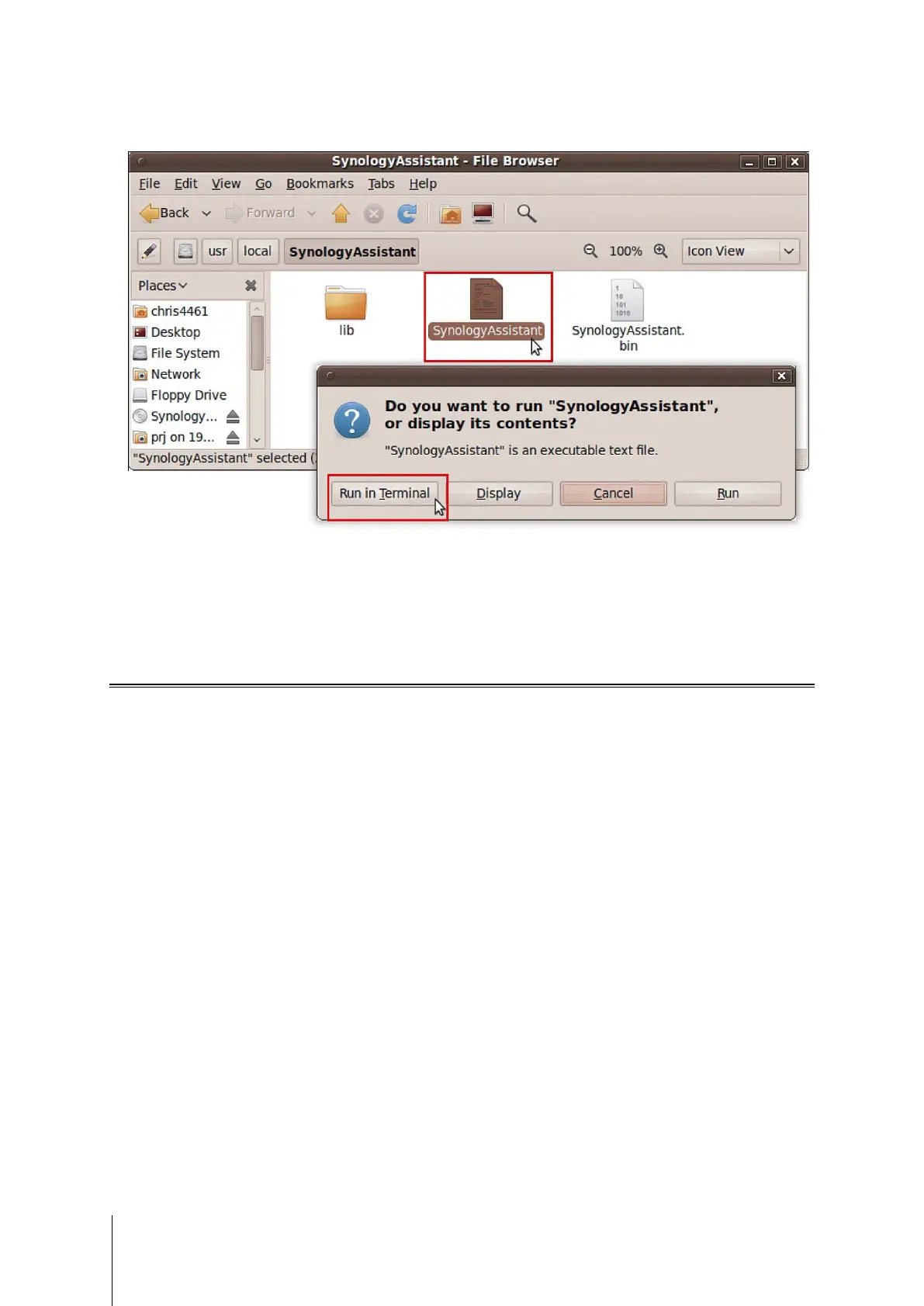 5 Go to /usr/local/SynologyAssistant (or [the path you just specified]/SynologyAssistant), double-click