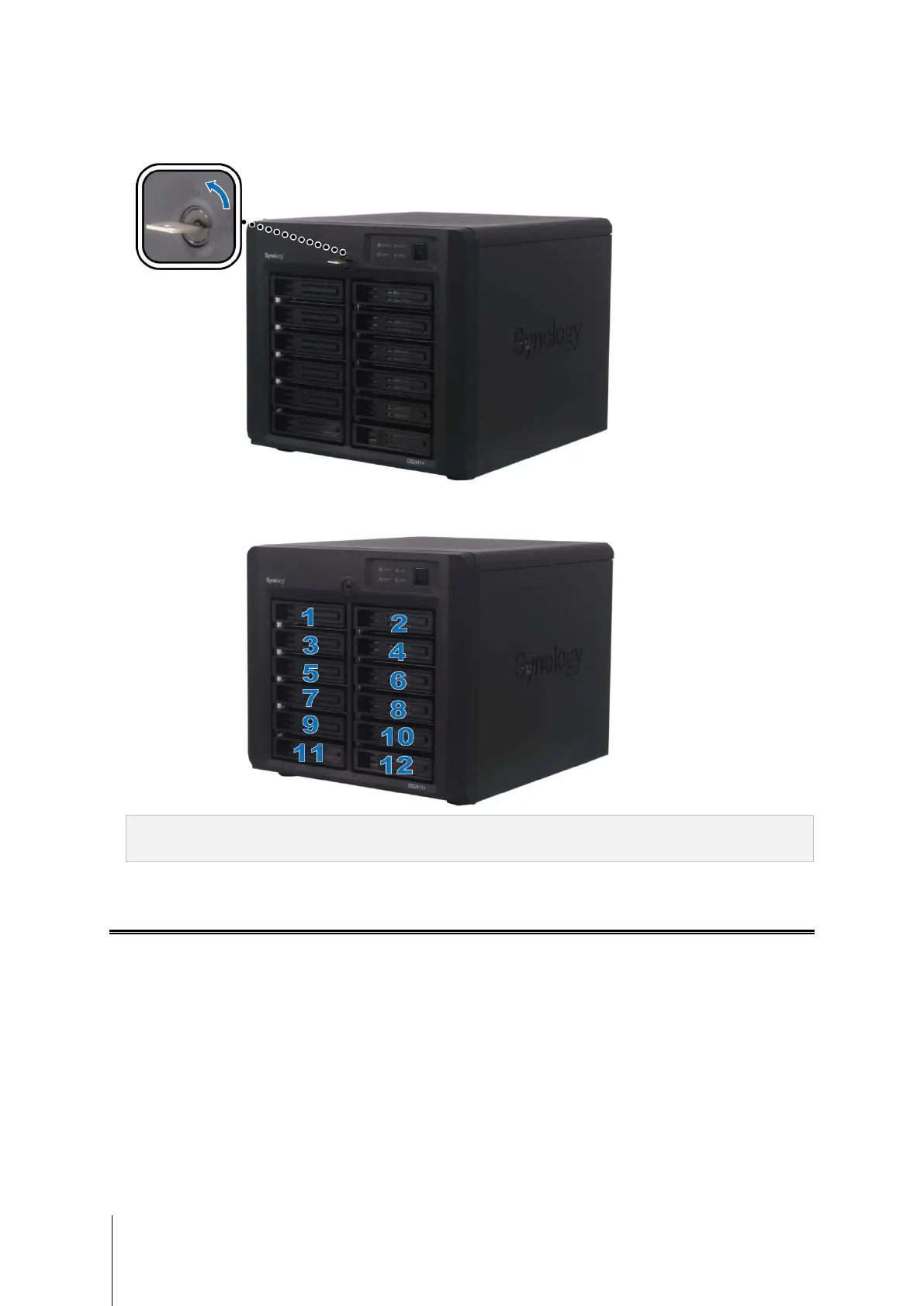 6 Turn the hard drive tray key 90˚ counter clock-wise (to the Lock position) to lock the handles of the hard drive