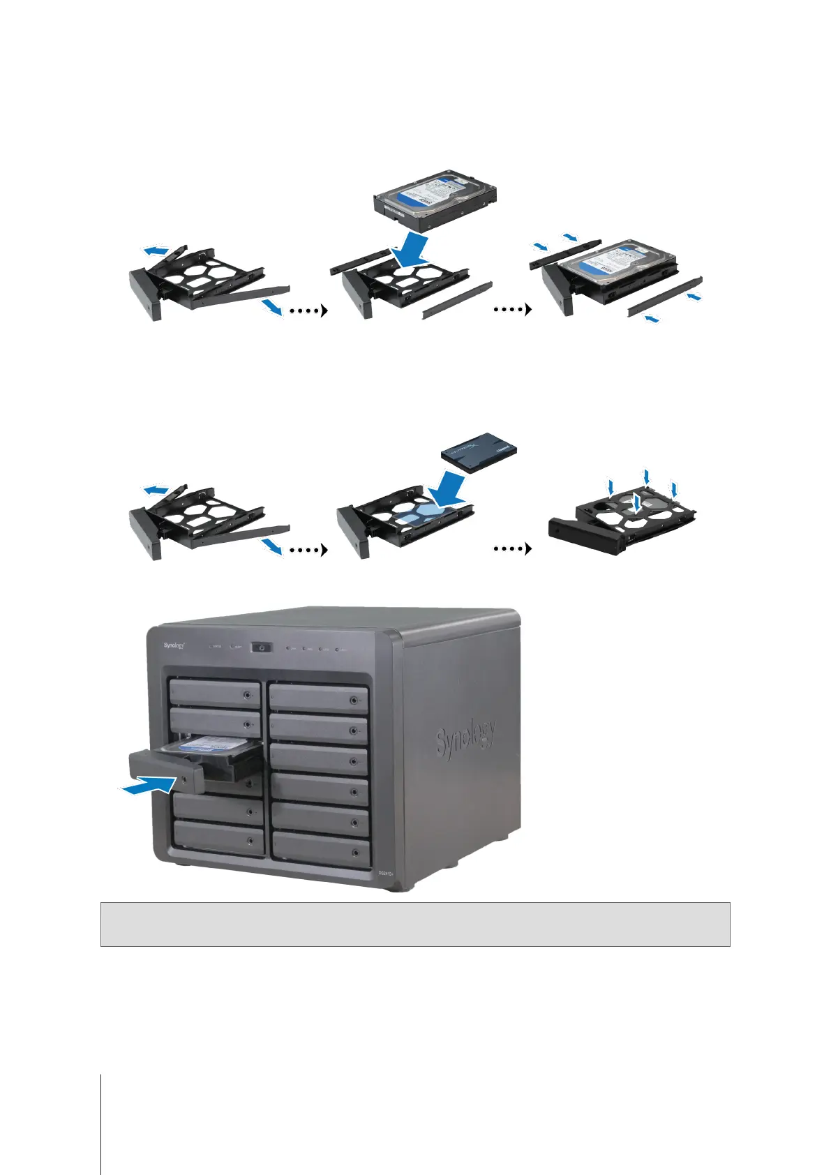 tray. Then insert the fastening panels to secure the drive in place.