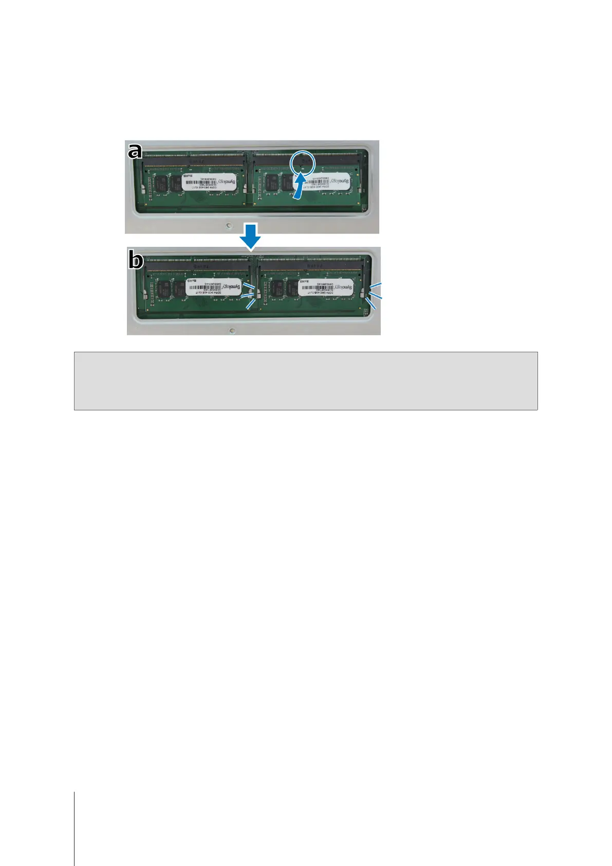 • Hold the memory module by its edges, and do not touch the gold connectors.