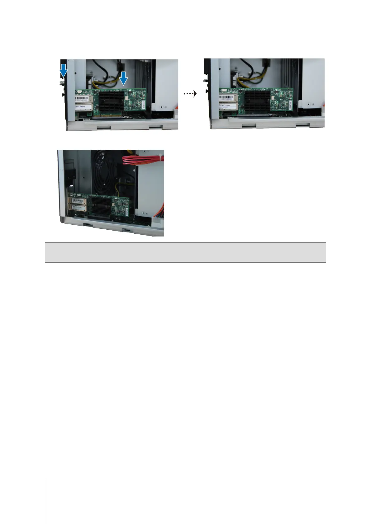Use two ngers with rm, even pressure to push down on the card and the bracket.