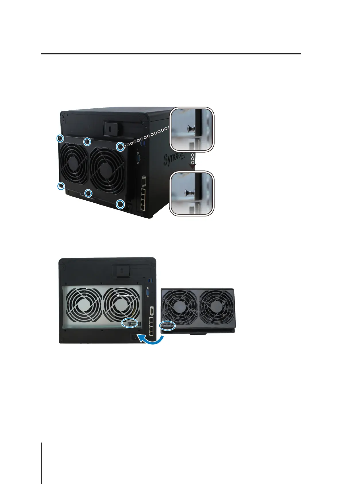 DiskStation, and then press the push pins back into place to secure the fan module.