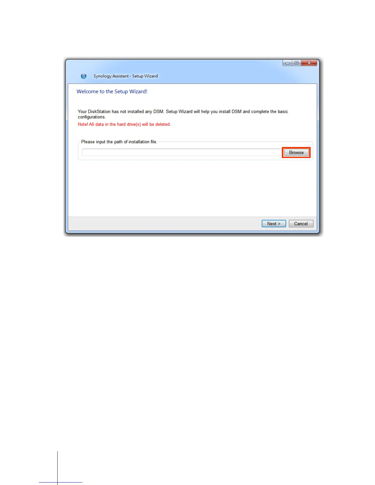 3 Click Browse to locate the DSM_[model name]_[number].pat installation file in the DSM folder of your