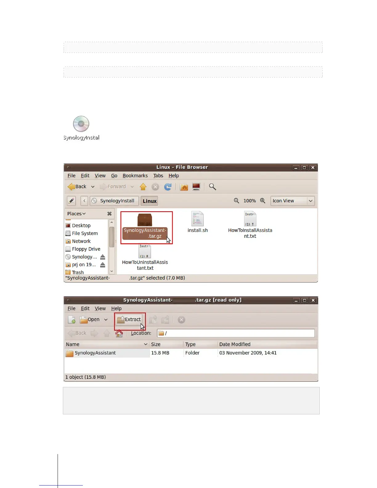 3 In the File Browser window that appears, double-click the Linux folder, and then double-click Synology