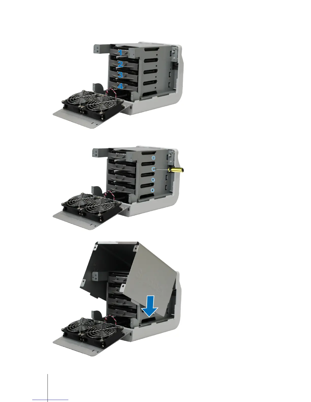 For 3.5” Hard Disk (only): Secure the hard disk trays with the screws (for securing hard disk trays)