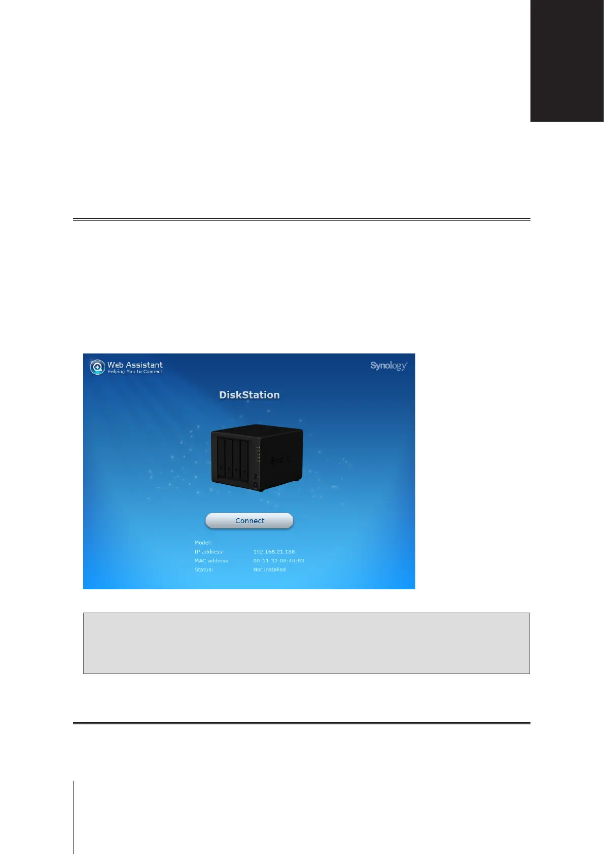 Web Assistant will be launched in your web browser. It will search for and nd the DiskStation within the local