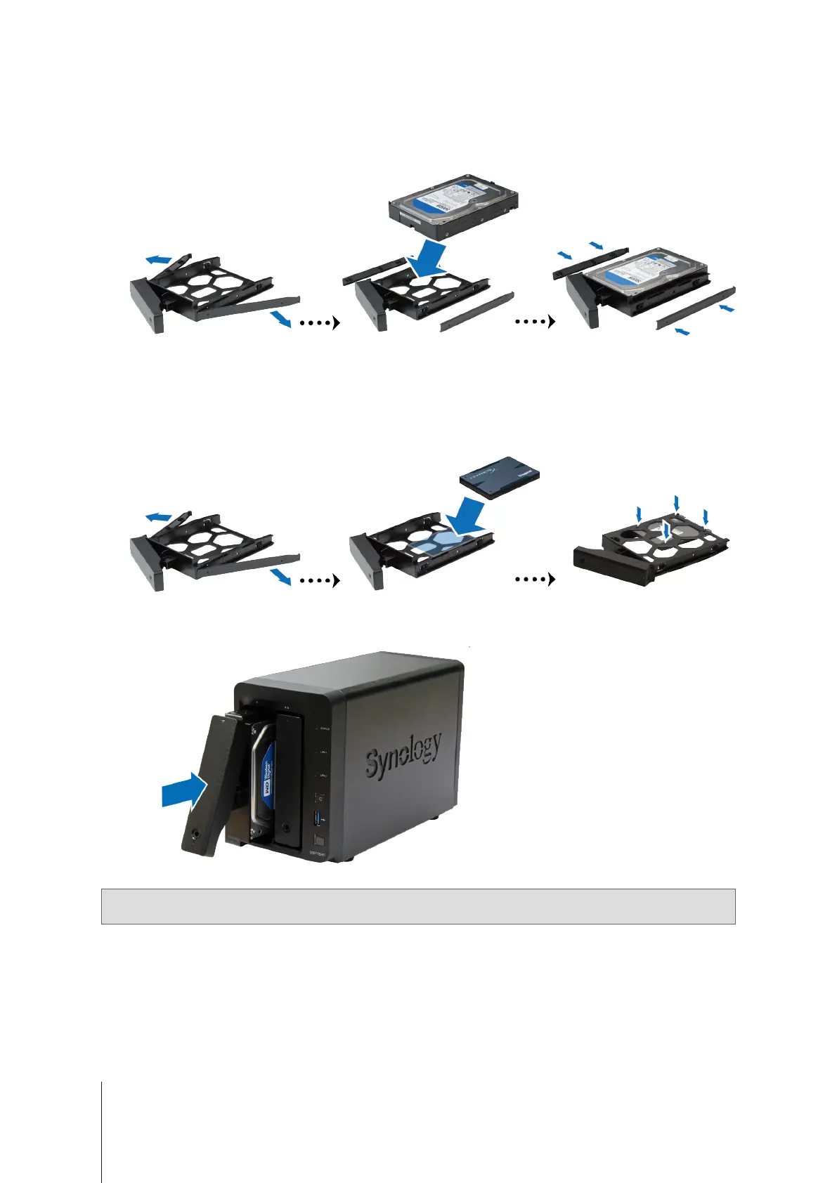 tray. Then insert the fastening panels to secure the drive in place.