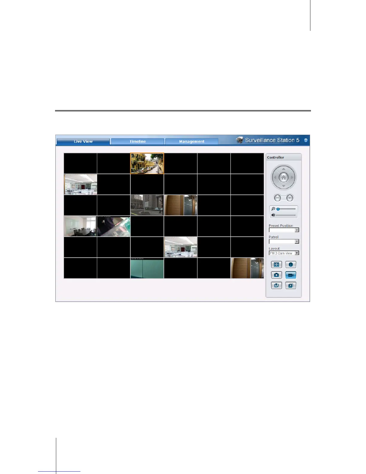 The Live View page displays real-time videos of all configured cameras. With Surveillance Station, you can