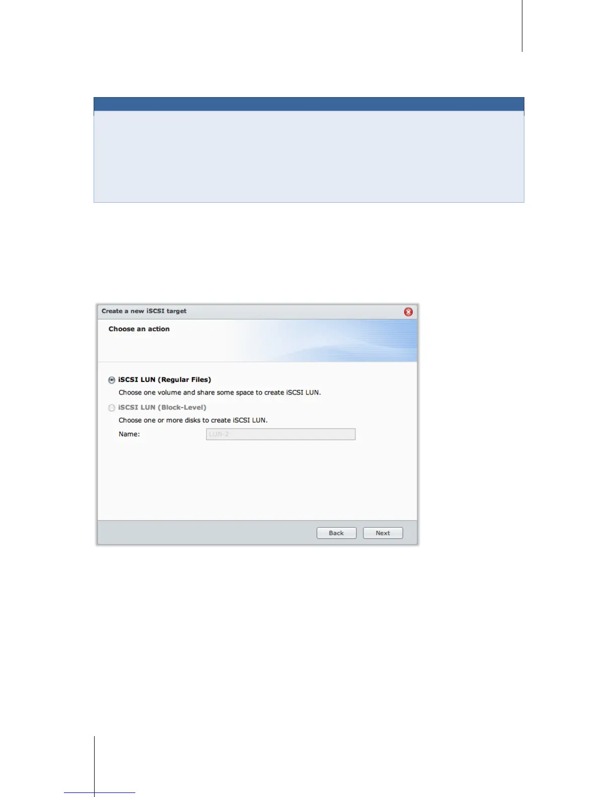 There are 2 ways to create an iSCSI LUN: