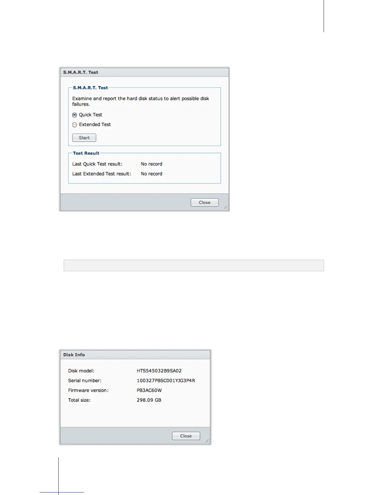 Disk S.M.A.R.T. will help you to examine and report the hard disk status to alert possible disk failures. It is