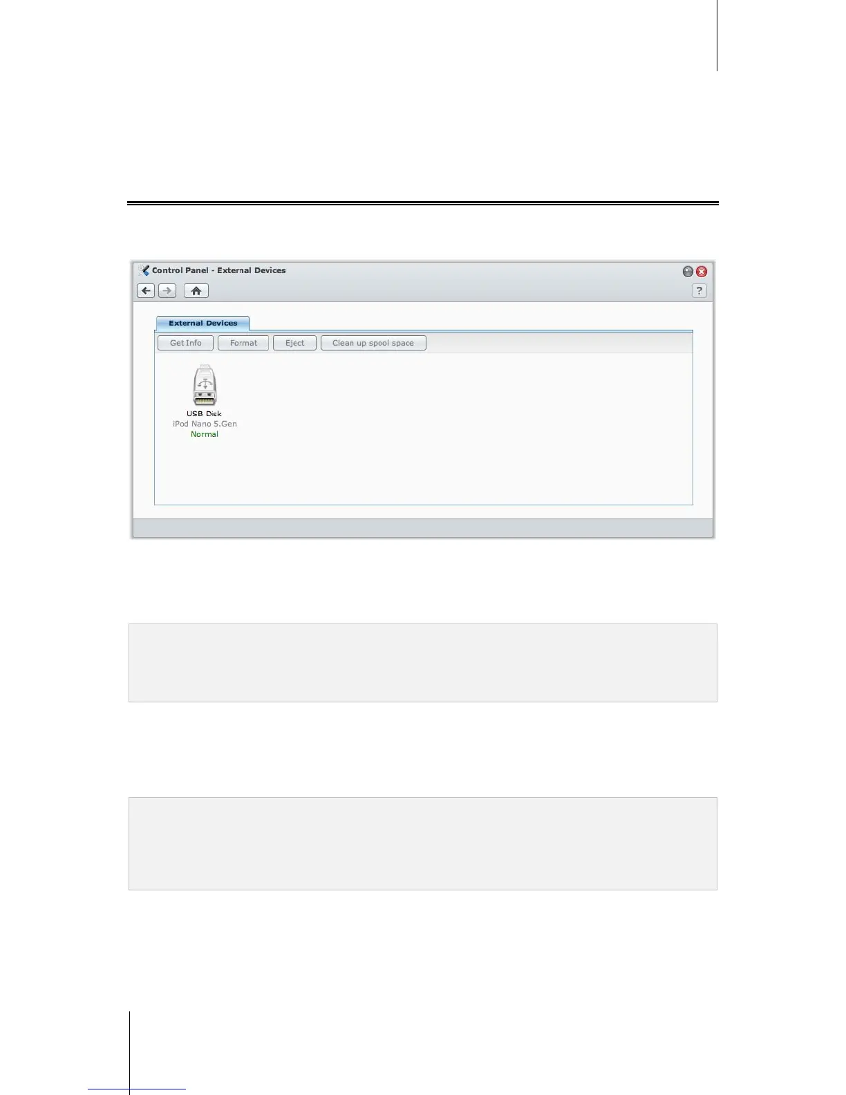 Go to Main Menu > Control Panel > External Devices to manage the attached external disks.