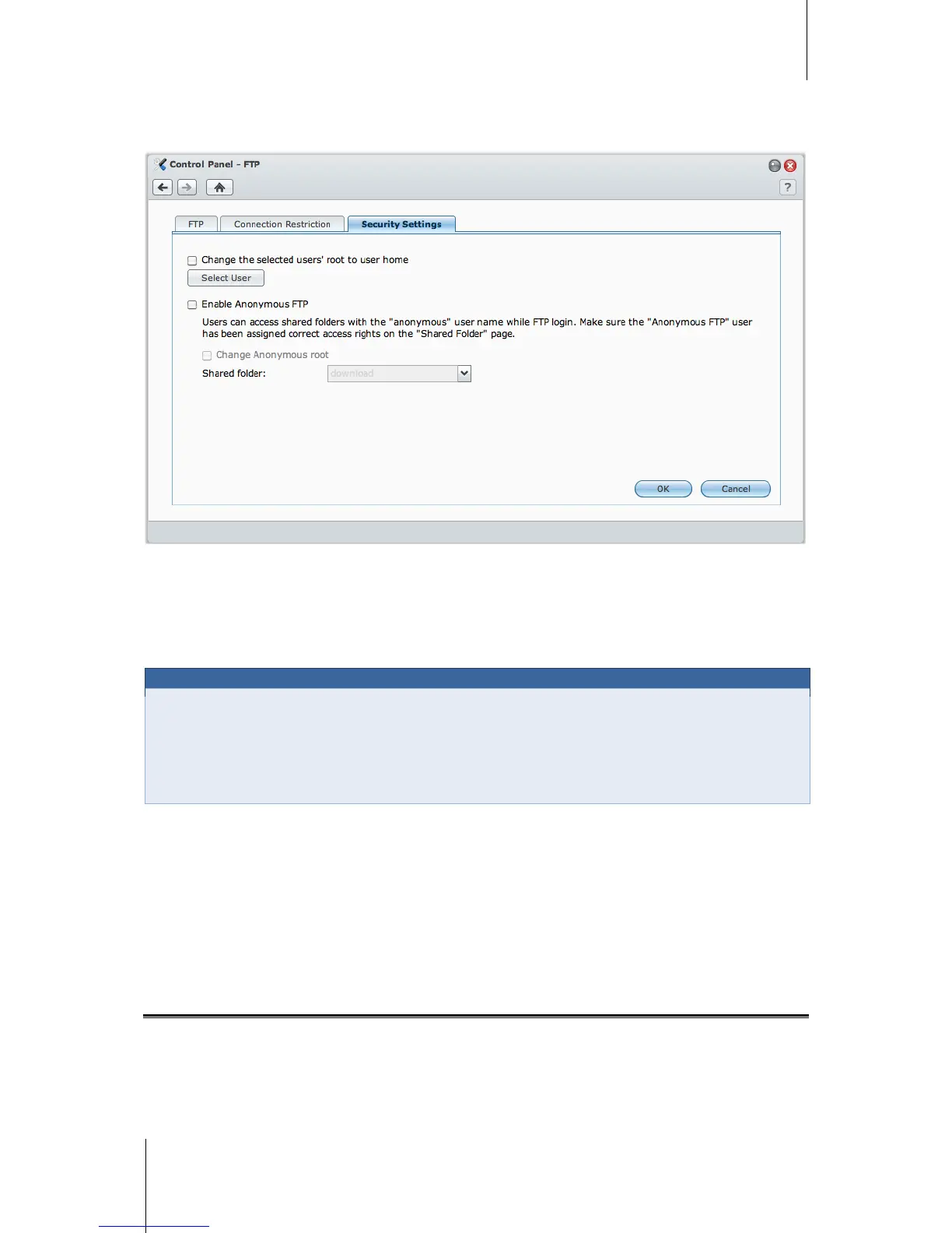 account). You can also tick Change Anonymous root and select a shared folder to restrict anonymous users’
