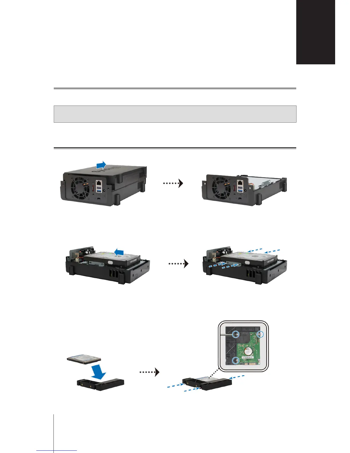 Place the drive in the 2.5" Disk Holder (Type C, sold separately), and then tighten the 2.5" screws to
