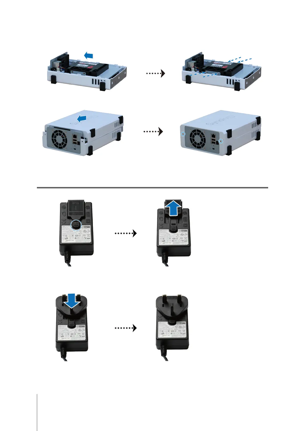 Slidetheplugadapterprovidedintotheslotsbypushingitdownward.Notethattheplugadapterthatcomes