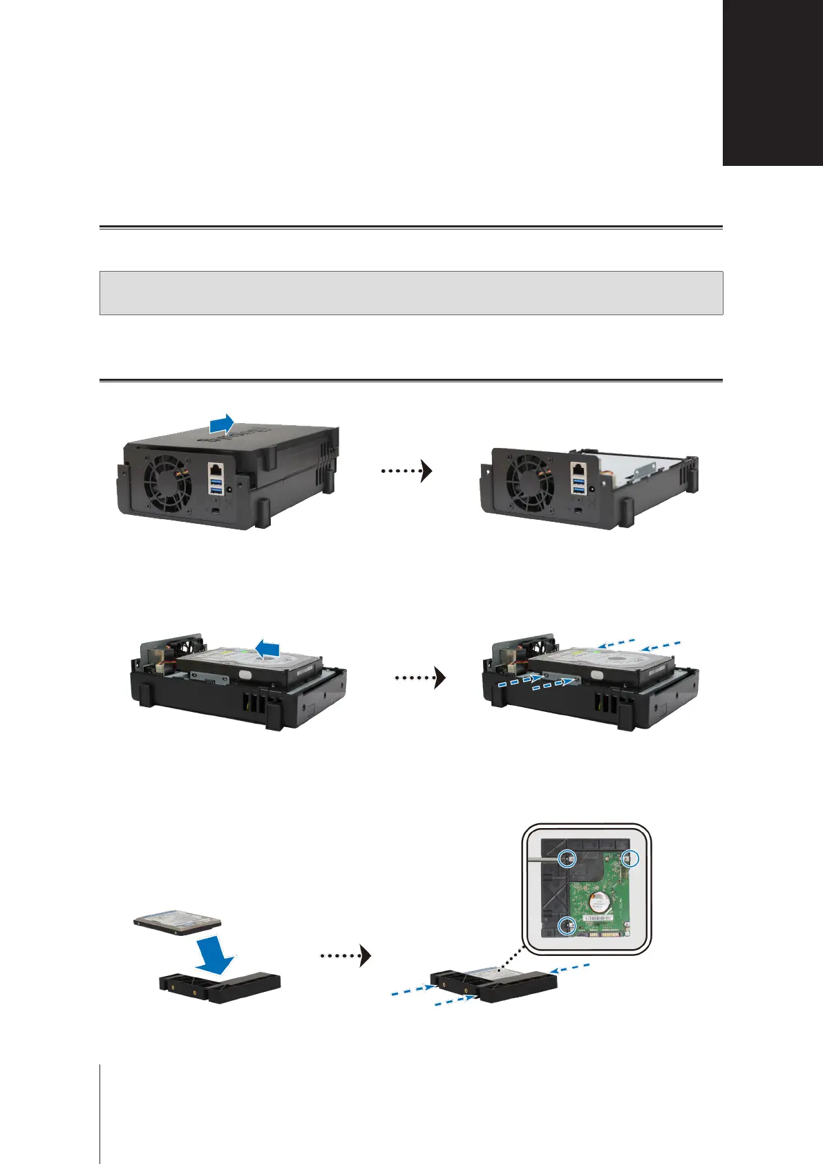 Place the drive in the 2.5" Disk Holder (Type C, sold separately), and then tighten the 2.5" screws to