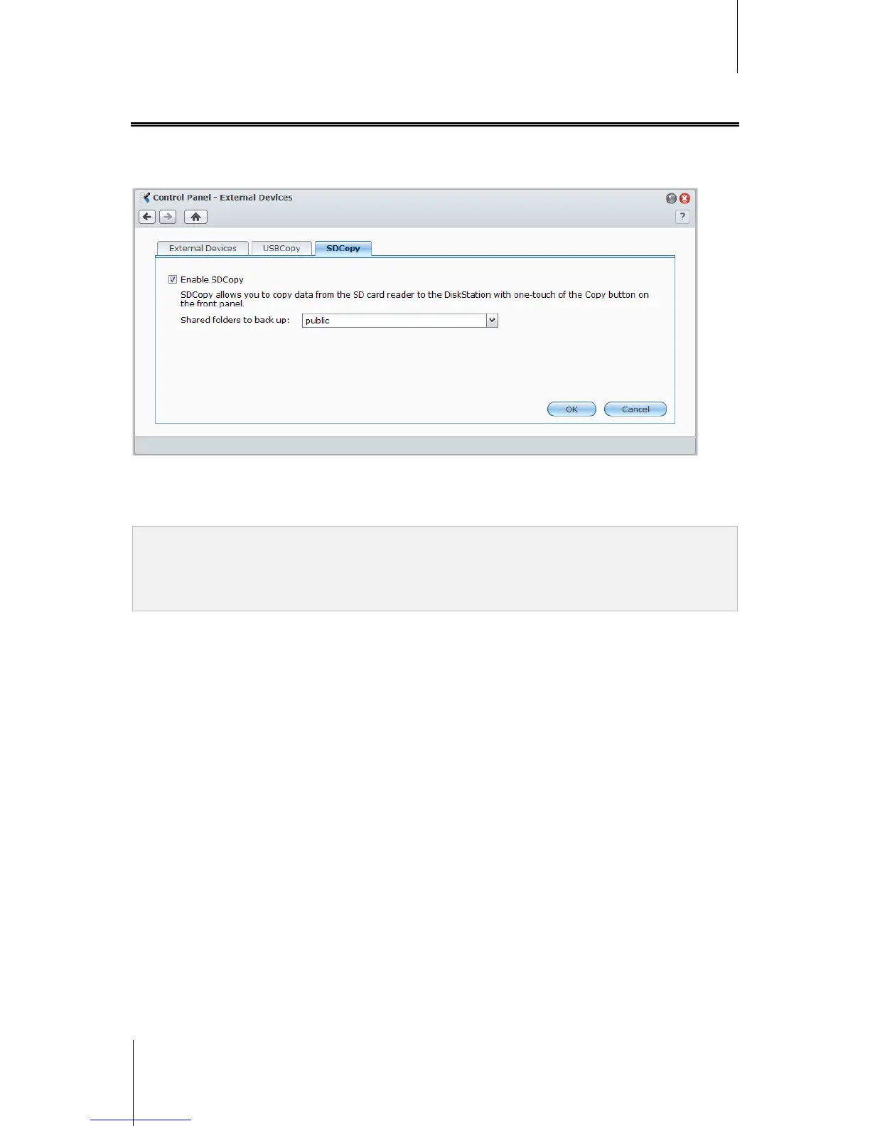 SDCopy is supported on specific models only. See "Appendix A: Synology DiskStation Specifications" on Page 219 for more