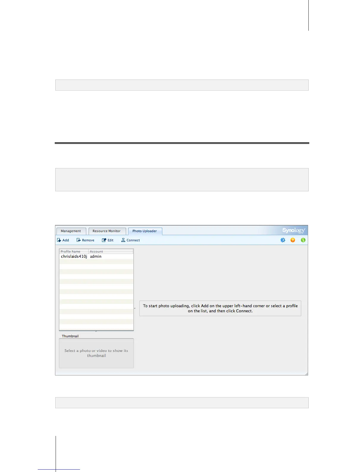 Note: For more information about using Photo Uploader, see the help of Synology Assistant.