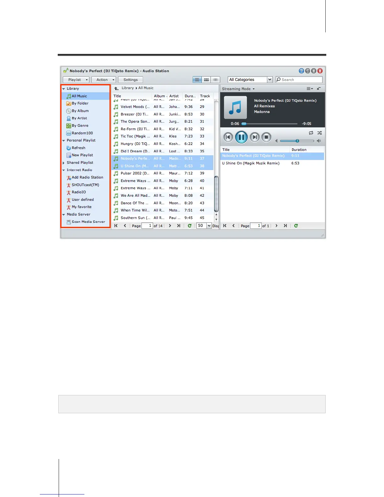 On the left section of Audio Station are several audio sources you can choose from for playback on Audio Station.
